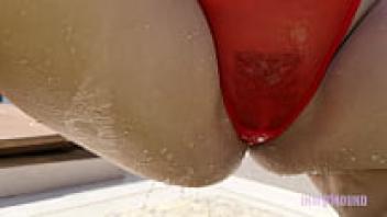 Chubby milf in stockings twists her juicy PAWG, shakes her large breasts, and masturbates her hairy pussy through underwear. homemade fetish.