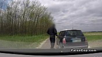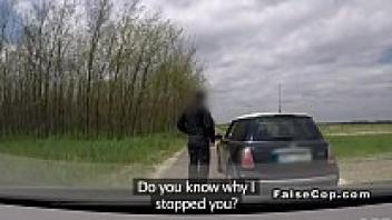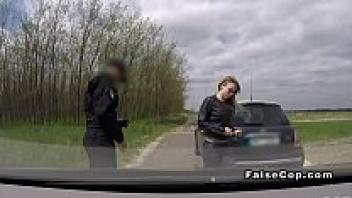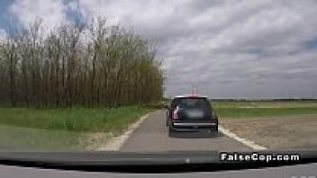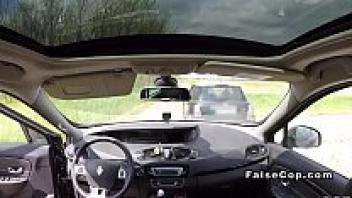 Love in a police car in public, tattooed babe