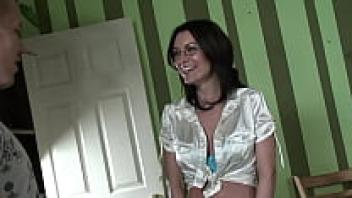 glasses-wearing, slender MILF girl
