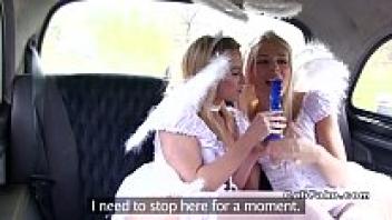 Angels who were blonde and lesbian carried a trio in a taxi.