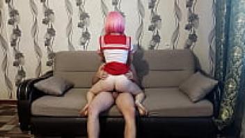 For a big asshole, a massive butt plug. An army girl with short hair plays with but plugs