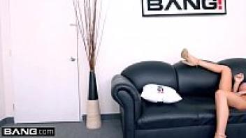 A Latina with a curly red hair was released from her first anal casting cumshot.