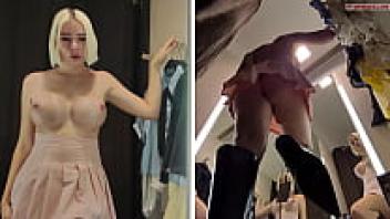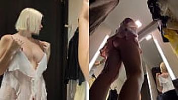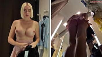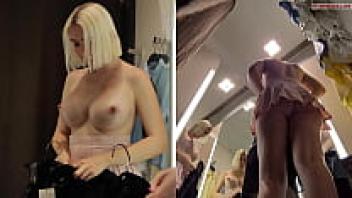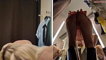 View of a juicy pussy from a hidden camera in a public changing room