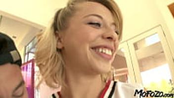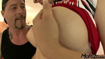 A curvy cheerleader has the sperm sprayed all over her body on MOFOZO.com.
