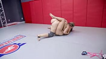 Savannah Fox fights Bella Rossi while fingering and eating her pussy in a lesbian wrestling match.