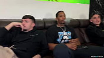 In the living room with their friends, she deceives him into bringing her a towel and showing her love.
