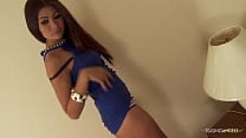 A charming Asian brunette is being pounded by a white tourist who is having a great time.