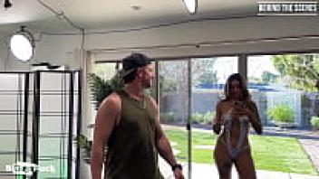 HUGE TITS Black Bikini Model Audition With A Big White Cock Cumshot