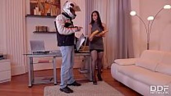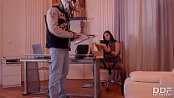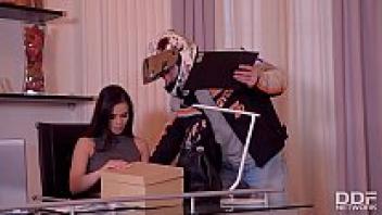 Nekane, the busty and bootilicious secretary, blowjobs Messenger.