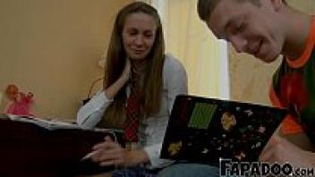 Following the English lesson, the step-sister tries Anal.