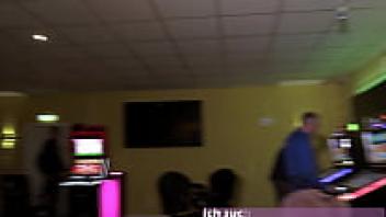 SEX PUBLIC: A German hottie sucks cocks at a casino