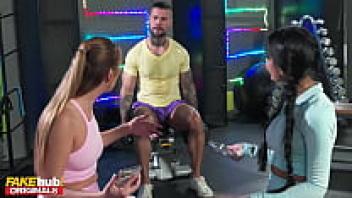STUCK4k. The fitness teacher doesn't rush to help the stunning hottie escape.