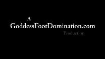 Boy with a foot fetish cleans his mistress's legs with his sperm