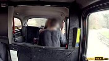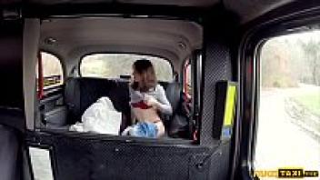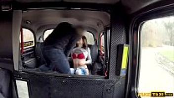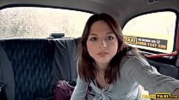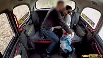 In a taxi, a skinny French woman with tiny tits is adored.