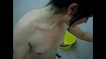 An Indian girl dressed as a French maid, taking a golden shower and cleaning up