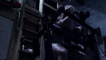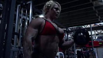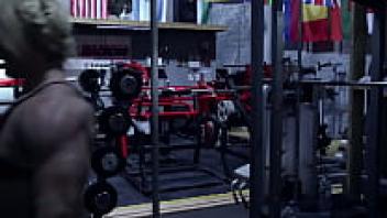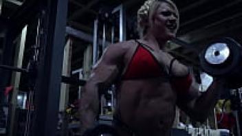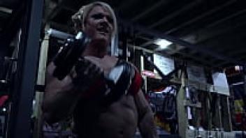 The Rope Is Used by a Female Bodybuilder to Play With Her Ass and Tits