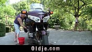 Grandpa's cock ride causes a young, small girl to swallow old come.