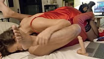1204: A white beauty wearing a satin dress, thong, stockings, heels, a blowjob, rimming, and a dog style
