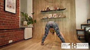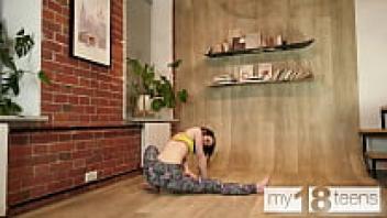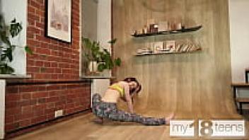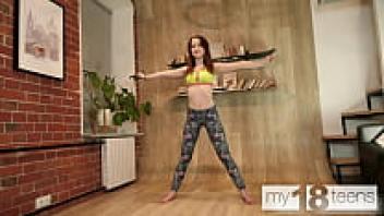 MY18TEENS: Adorable teenager Miss Petite May licks her little pussy