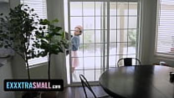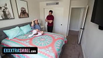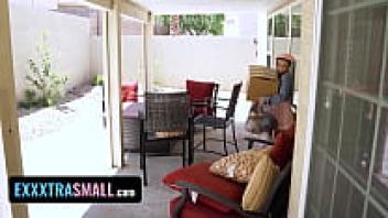 Before sticking his cock in her pussy, the extremely small Asian woman lets her neighbour Dildo adore her.