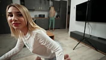 In the motel room, the stepfamily shares a bed! Stepmother's first threesome