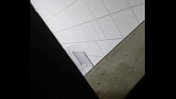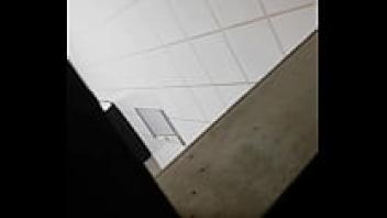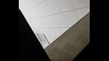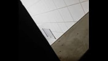 Using a hidden camera, a muscular stepfather was able to spy on his stepson as he was using the restroom.
