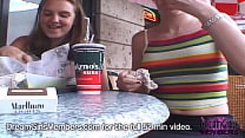 In public, Brandy flashes her hot pussy.