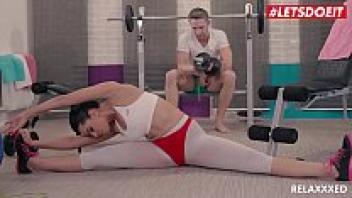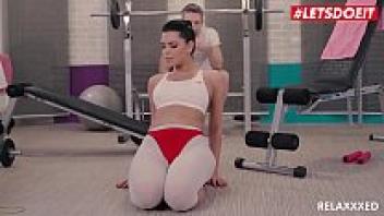 At the gym, LETSDOEIT's curvy, sexy Kira queen rides a large cock.