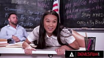 DEVILS FILM: A lustful Asian student is adored by her teacher's large cock.