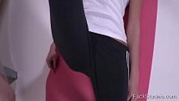 The young brunette beauty with perky tits is told by the coach assistant what exercises she must perform in order to join the team as a full member.