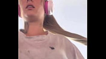 I was really hot from working out at the gym, so I took off my t-shirt and put on a bra since I was so aroused. (All wet, pussy)