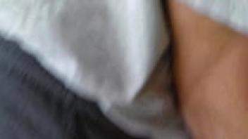 Mature wife gives me a blowjob, and I cum in her mouth. She smears sperm all over her large breasts. Homemade oral sex for an overweight couple. Amateur fetish.