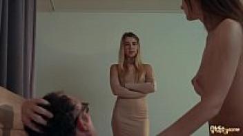 After having sex with an elderly man, two young beauties ingest his creamy cum.