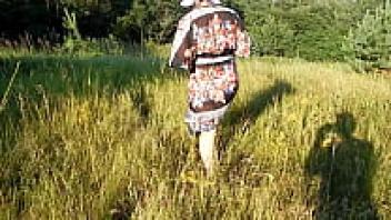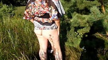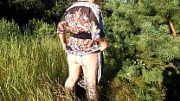 enjoying a leisurely meal in a park while nude. displaying one's pussy and breasts in public.