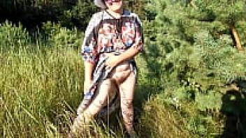 A mature, hairy person flashing in pants at a public park