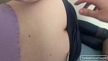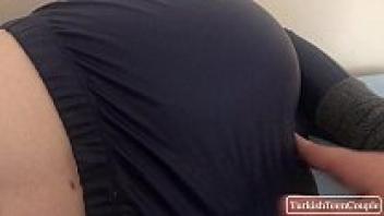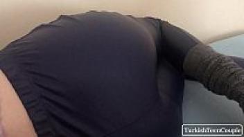 After waking up, the Turkish stepsister gets a huge cumshot on her pants.