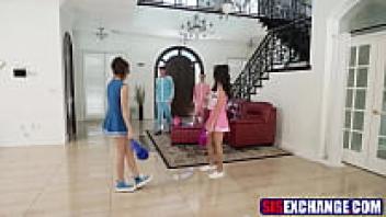 Taboo family: cheerleader step sisters trade stepbrothers for sex