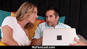 To stop him from making fun of her short stature, Stepsis grabbed Stepbro's Dick out of lust.