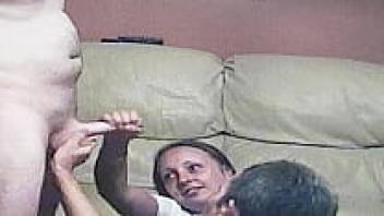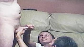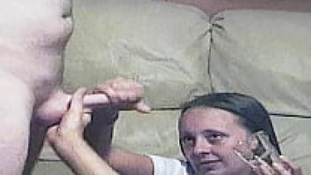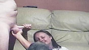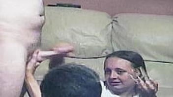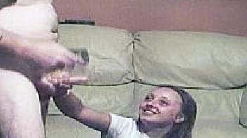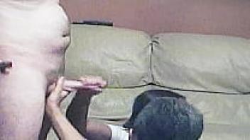 To the point where he cums, a thick Asian teen with large natural breasts sucks.