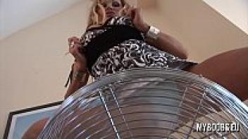 Her employer is seduced by a blonde Milf secretary who has enormous tits.