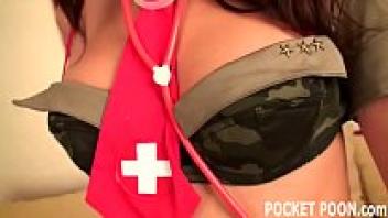 Amber Daikiri, dressed as a nurse, plays with her pussy.