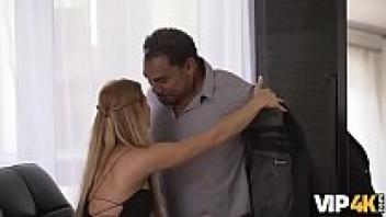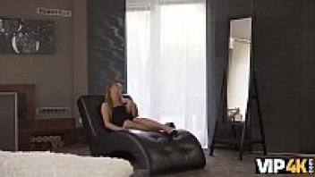 VIP4K. A long-limbed woman inserts a strong black rod into her vagina.