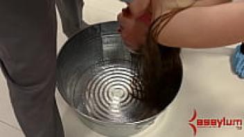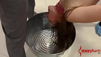 Mika Shindo, an Asian bondage brunette, with a group of men.