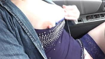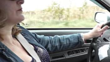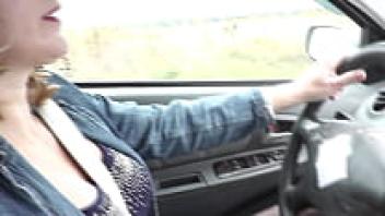 squirting in the vehicle. Sexy Milf gets a powerful wet orgasm, masturbates his pussy, and stops his car on the side of the road. A squirrel