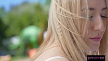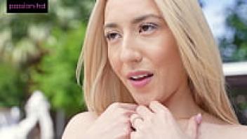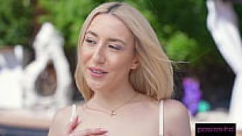 Big Cock is massaged by sweet Sophia besides the pool.