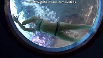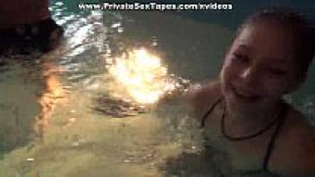 Sexy bikini bimbo having passionate, raunchy poolside sex with a partner