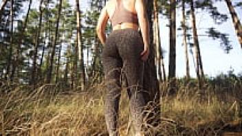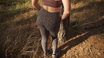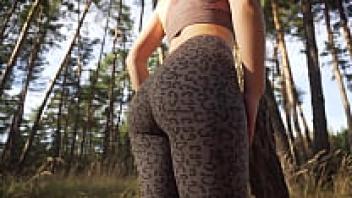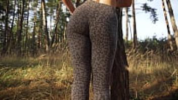 As she teases, a petite Milf wears tight leopard leggings. What a lovely ass
