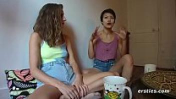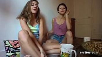 Lesbian facesitting orgasm performed by Lesbea Cindy Shine and the adorable Asian Alina Crystall couple