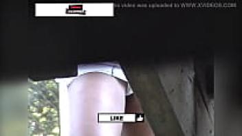 A foolish eighteen-year-old bitch wearing a pink miniskirt with a hidden voyeur camera upskirt