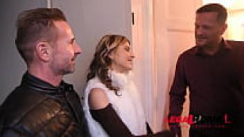 Gina Gerson, a petite blonde, was gagged, handcuffed, and adored by two domineering guys. GP545